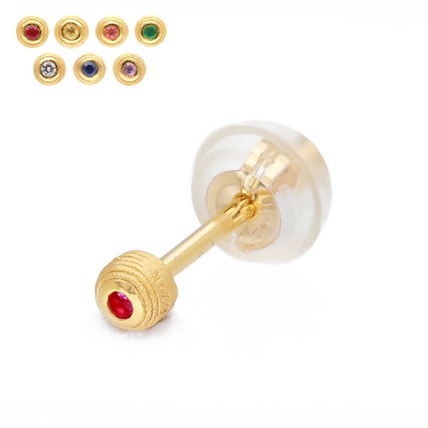 【即日お届け】7色の誕生ストーン 純金スタッドピアス -片耳用-