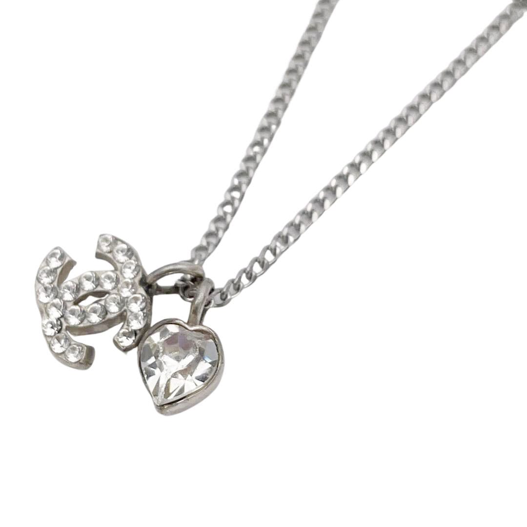 CHANEL シャネル ネックレス ココマーク ハート ラインストーン 04A シルバー
