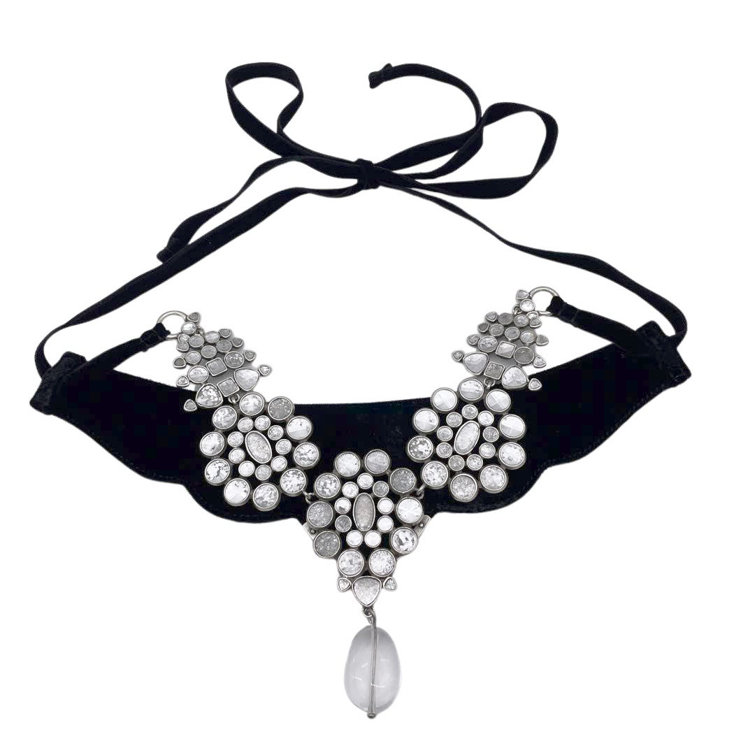 YVES SAINT LAURENT イヴ・サンローラン チョーカー ネックレス ロック クリスタル ベルベット ブラック シルバ...