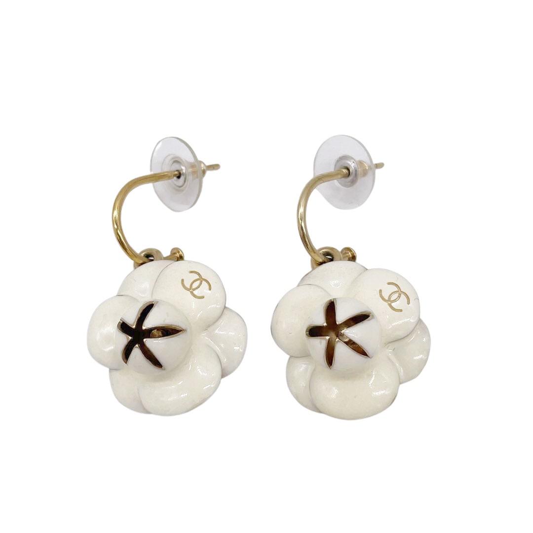 CHANEL シャネル フープピアス カメリア フラワー ココマーク 02P ホワイト/ゴールド