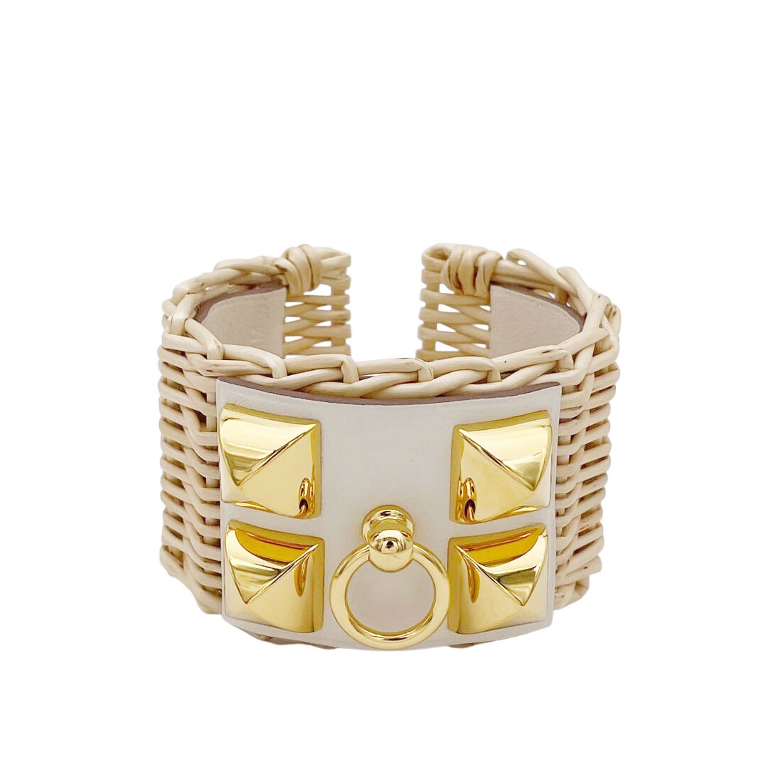 HERMES エルメス ブレスレット コリエドシアン メドールピクニック T2 柳材 ヴォー・バレニア ナタ ゴールド金具 B刻印