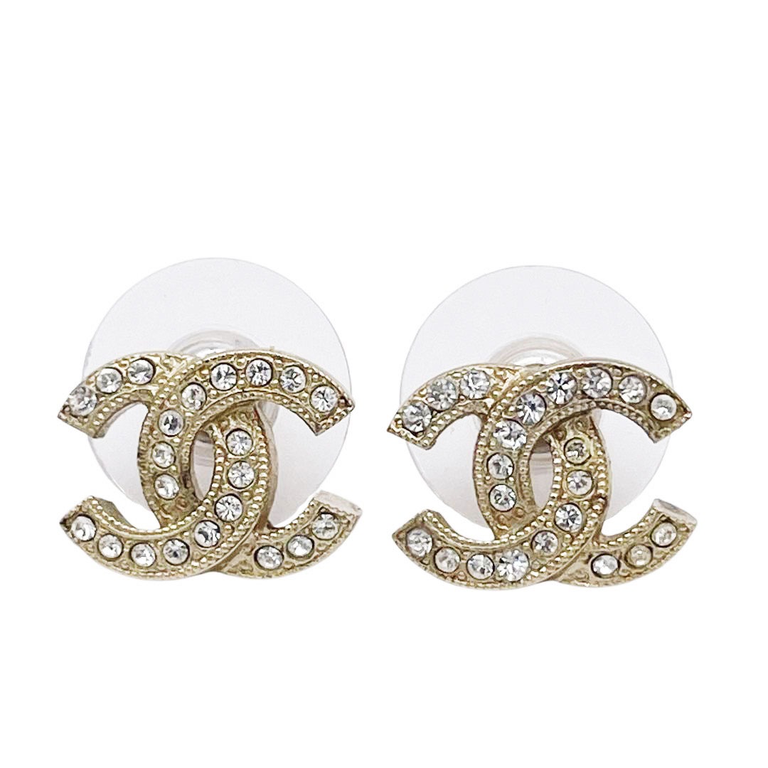 CHANEL シャネル ピアス ココマーク ラインストーン シャンパンゴールド C17V