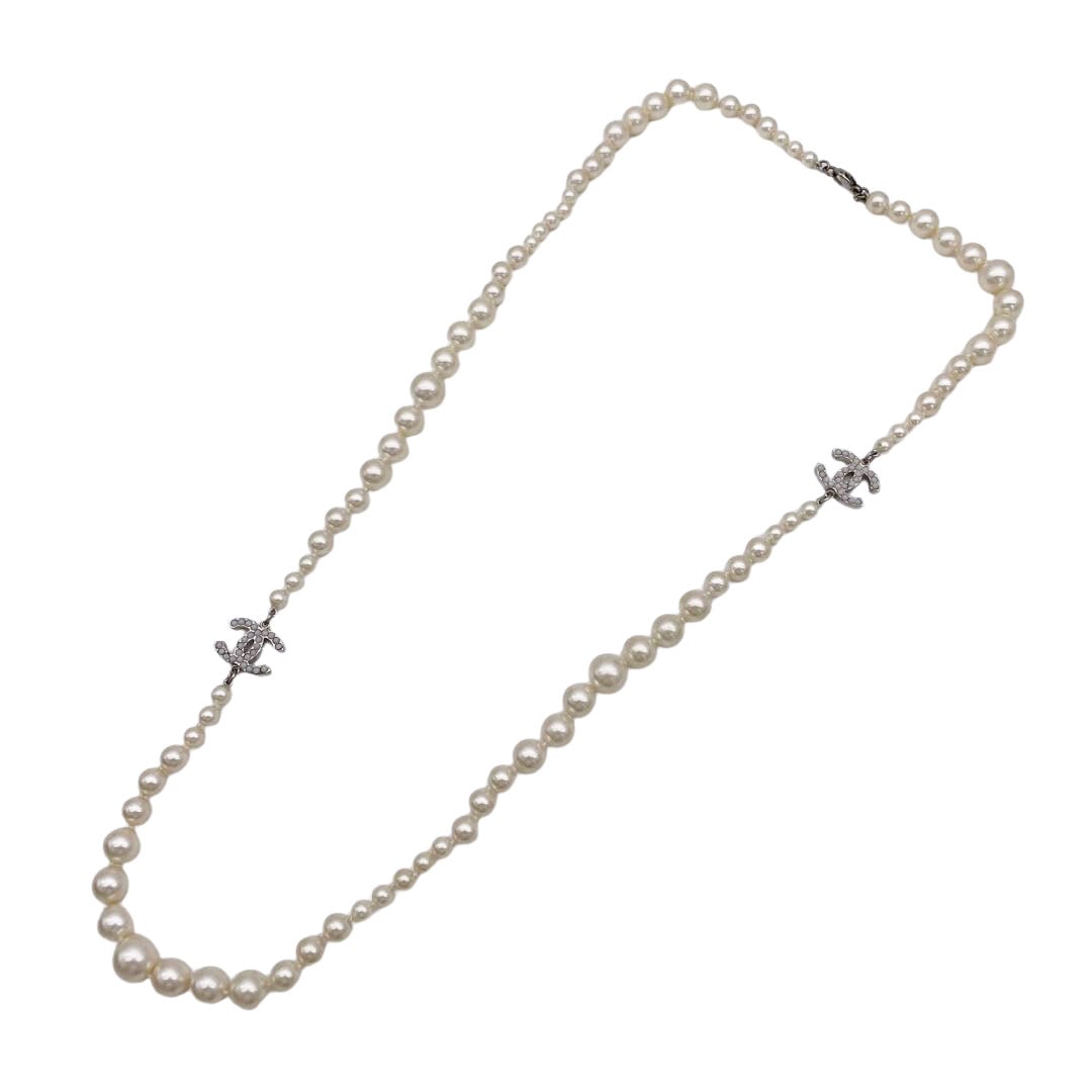 CHANEL シャネル ロングネックレス フェイクパール ココマーク シルバー 09V