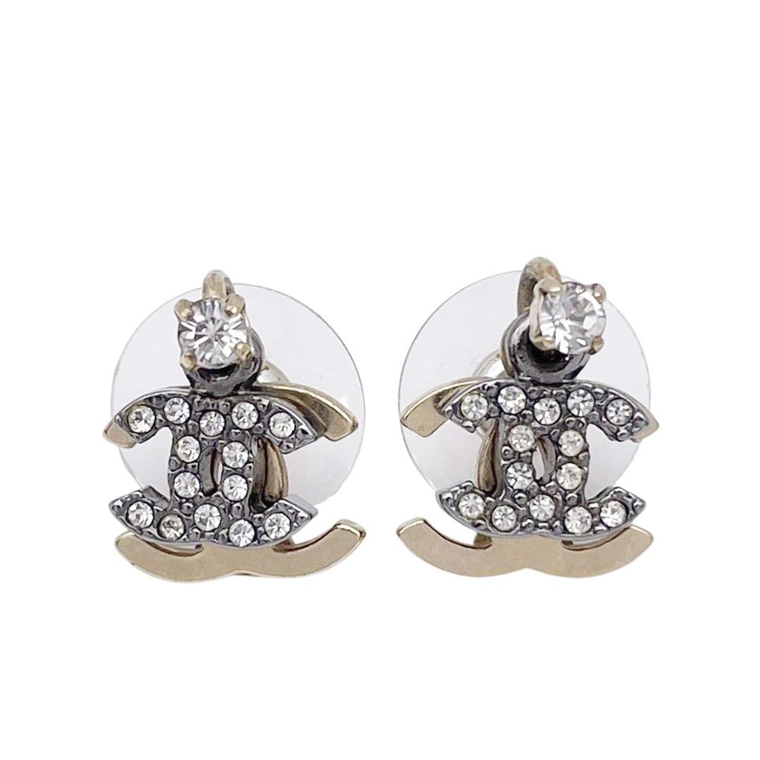 CHANEL シャネル ピアス ダブルココマーク ラインストーン ガンメタ ゴールド 06P