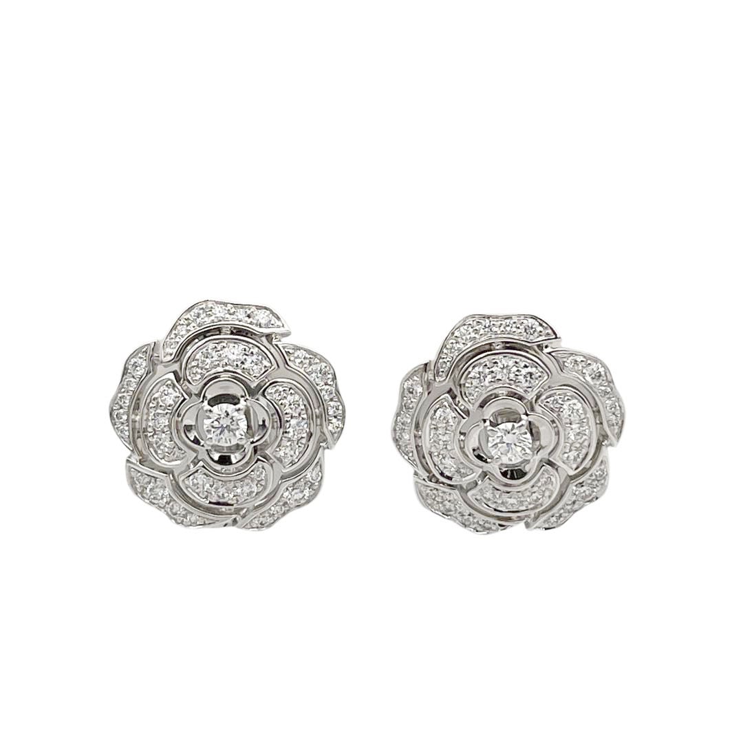 CHANEL シャネル ピアス カメリアコレクション Au750 ダイヤモンド 7.68g ホワイトゴールド J11179