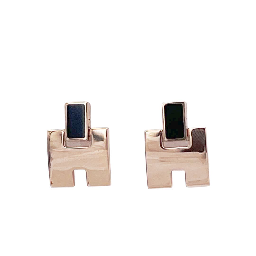 HERMES エルメス ピアス アイリーン メタル ラッカー ピンクゴールド ブラック
