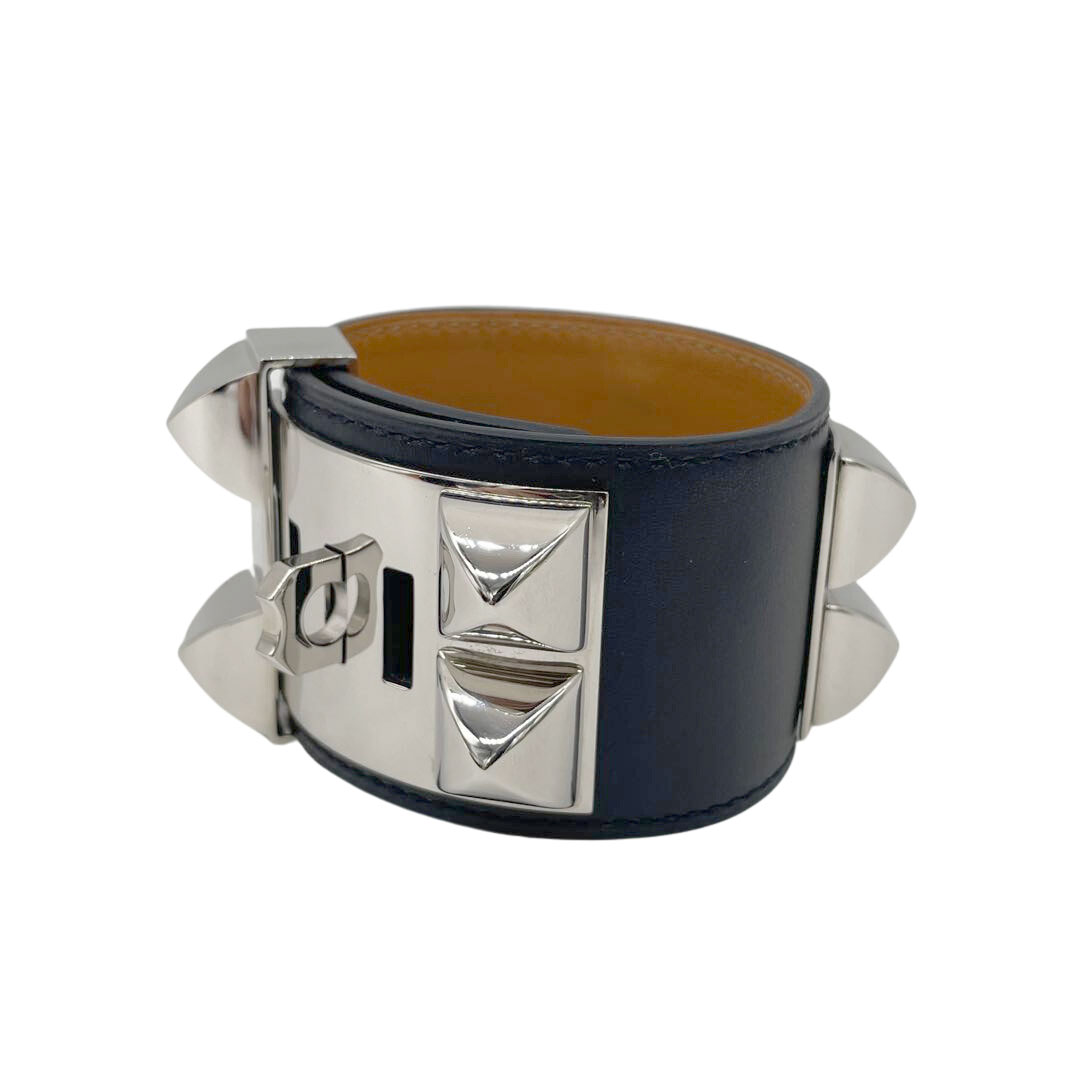 HERMES エルメス レザーブレスレット コリエドシアン Sサイズ ボックスカーフ ブラック シルバー □R刻印