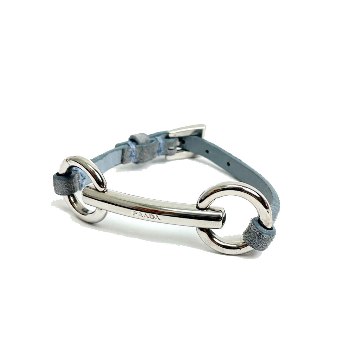 PRADA プラダ ブレスレット レザー/メタル シルバー ブルー