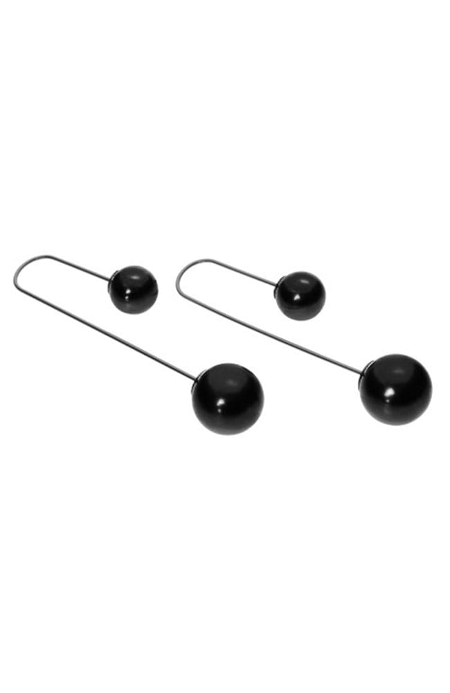 ダブル パール ドロップ ピアス (ガンメタル/ガンメタル)