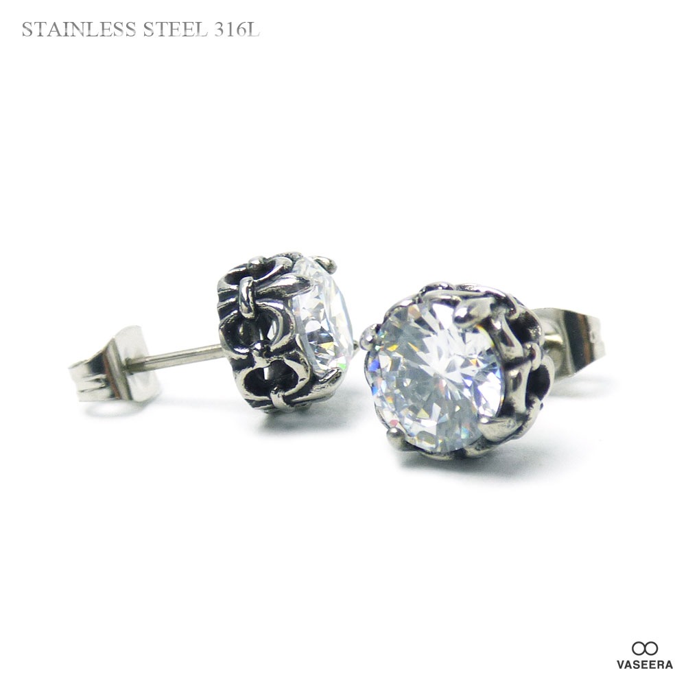 【2個セット(両耳用)】 9mmジルコニア埋込み フルールドリス(ユリ紋章) 台座 ブラックポリッシュ アンティーク仕上げ ステン...