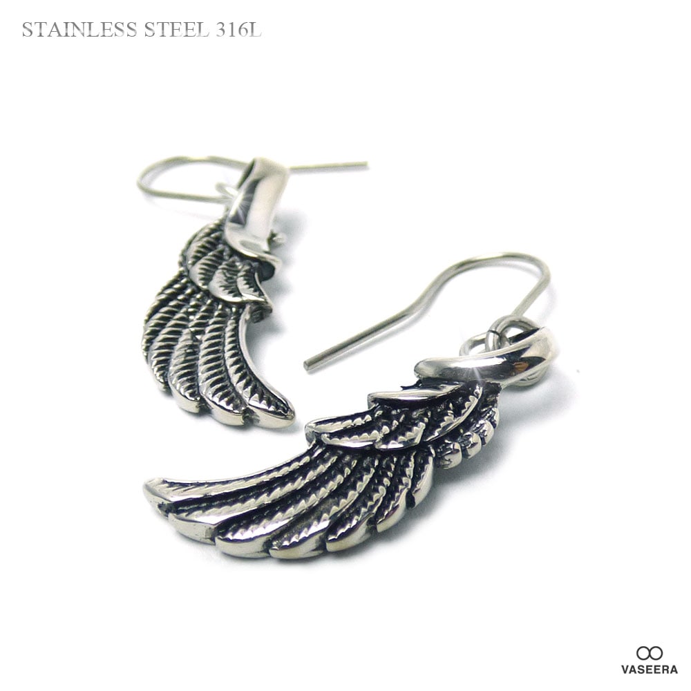 【2個セット(両耳用)】 23mmウィング(翼)モチーフ ブラックポリッシュ アンティーク仕上げ ステンレス ジプシーピアス/フ...