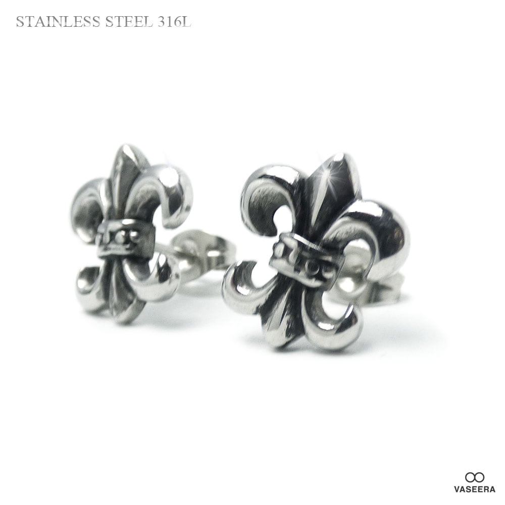【2個セット(両耳用)】 14mm フルールドリス(ユリ紋章) ブラックポリッシュ アンティーク仕上げ ステンレス ピアス 【ステ...