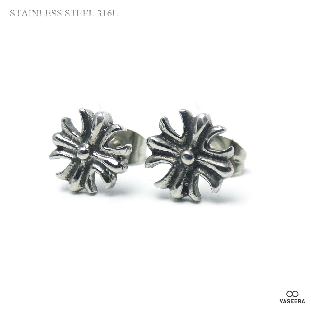 【2個セット(両耳用)】 15mm フローラルクロス ブラックポリッシュ アンティーク仕上げ ステンレス ピアス 【ステンレス・ス...