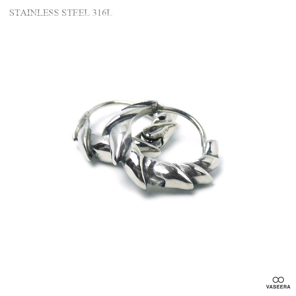 【2個セット(両耳用)】 フェニックス(鳳凰の尾) ブラックポリッシュ アンティーク仕上げ ステンレス フープ ピアス 【ステン...
