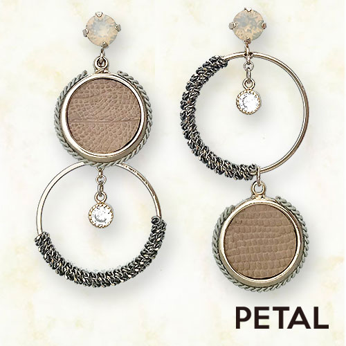 本革型押しのアシンメトリーサークルピアス 【PETAL MARKET】