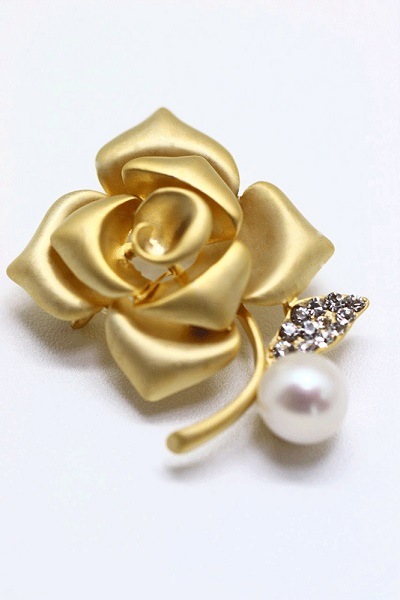 パールブローチ ゴールドリーフ パール10mm