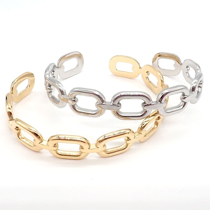 【メール便送料無料】 ステンレス バングル【36 チェーン型】1個 ユニセックス 金属アレルギー対応 ゴールド シルバー