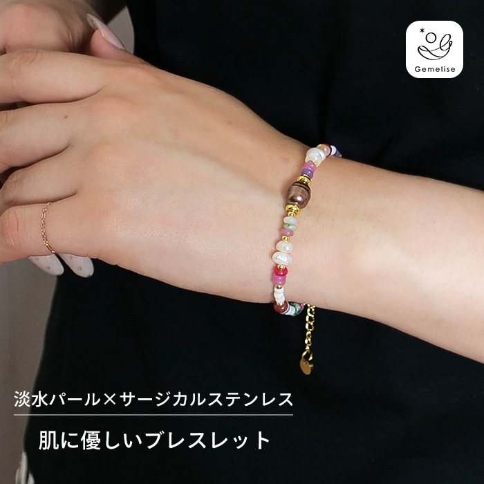 Gemelise ジェメリース 淡水パール×人工石(マルチカラー)ブレスレット 750303