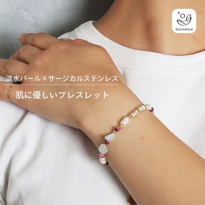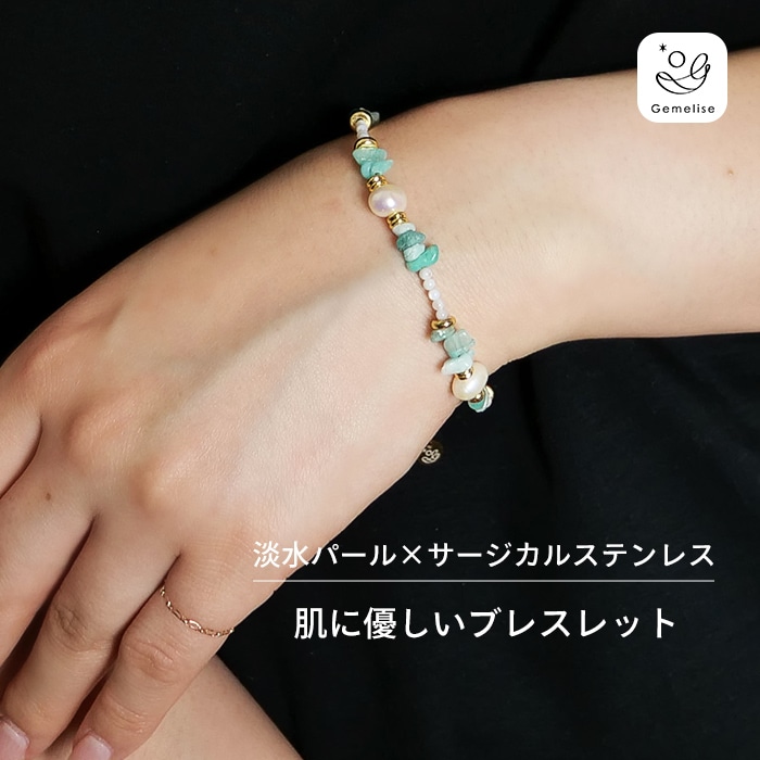 Gemelise ジェメリース 淡水パール×天然石(アマゾナイトなど) ブレスレット 750258