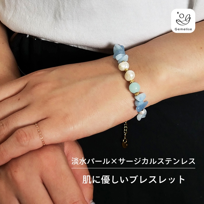 Gemelise ジェメリース 淡水パール×天然石(アクアマリンなど) ブレスレット 750300