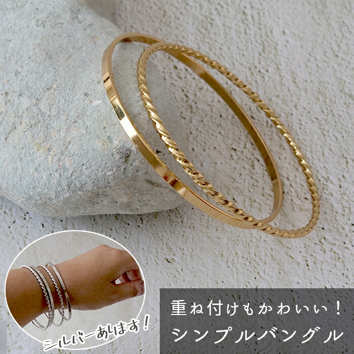 同色の組合せ自由!【39】シンプル バングル リング型 1-3個 ステンレス 金属アレルギー対応 メール便送料無料