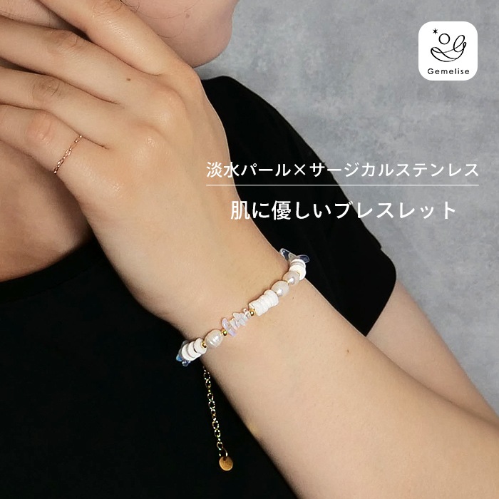 Gemelise ジェメリース 淡水パール×天然石(ミルキークォーツなど)ブレスレット 750264