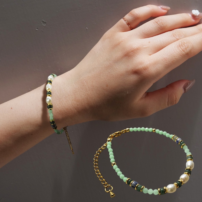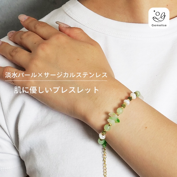 ストーンブレスレット グリーンアベンチュリン ブルーアベンチュリン 淡水パール 内周約16.5cm SUS316 サージカルステン...