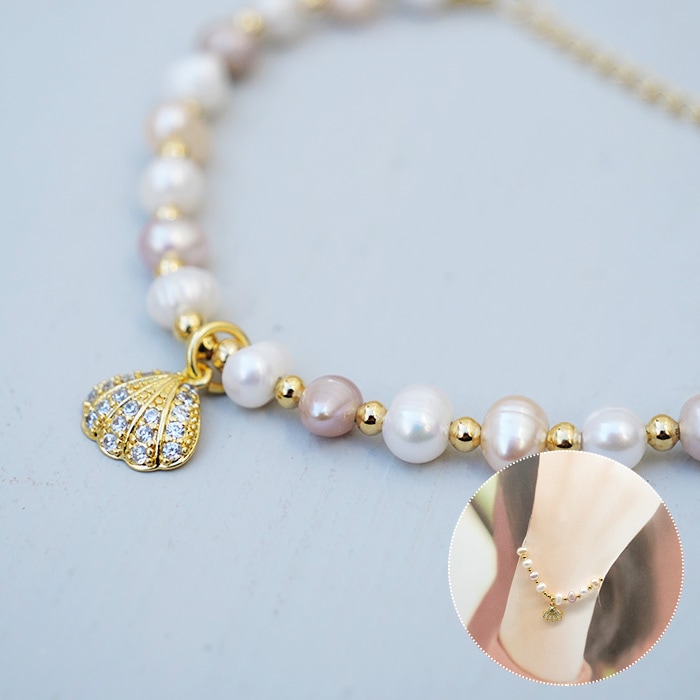 淡水パール ブレスレットピンク アジャスター付き レディース アクセサリー 真珠 国内発送