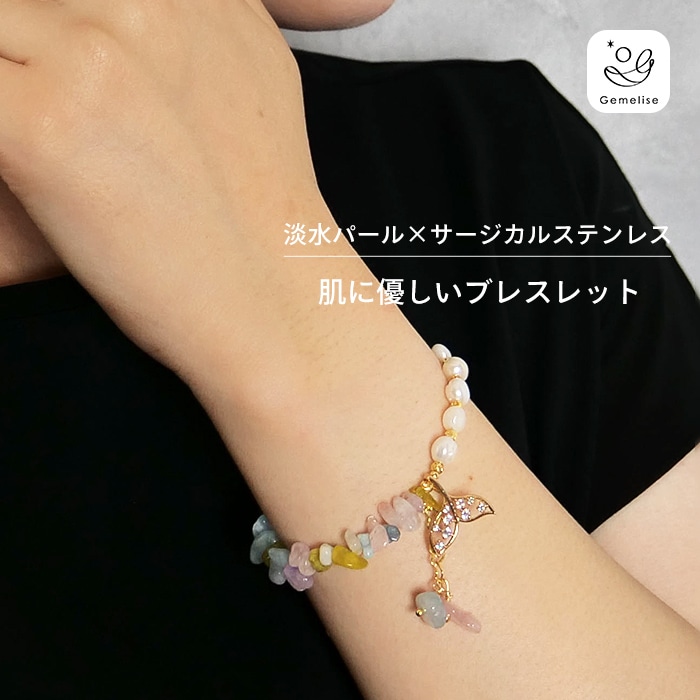 Gemelise ジェメリース 淡水パール×天然石(ホエールテール・ミックスベリル)ブレスレット S75223031