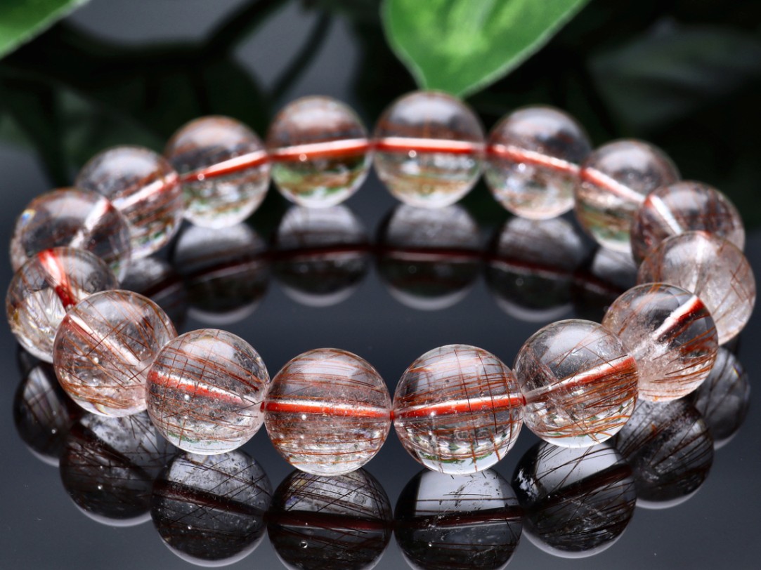 【1点物】金運・財運の石★天然石ブレスレット/オレンジレッドルチルクォーツ(ルチレイテッドクォーツ/Rutilelated qua...