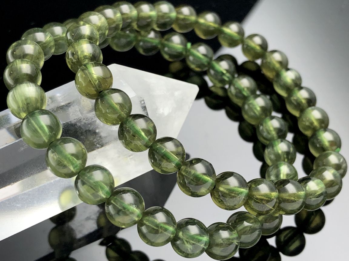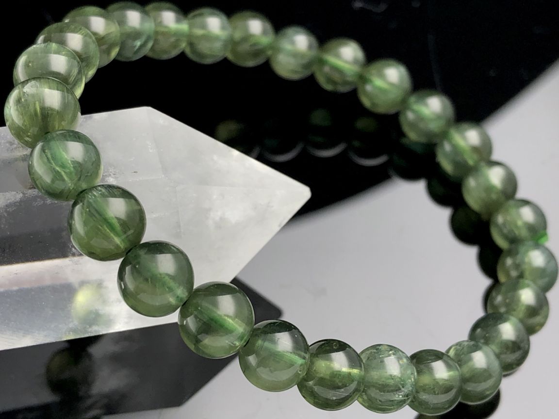 希少石★ブラジル産★天然石ブレスレット/プラジオライト(グリーンアメジスト/Prasiolite/Amethyst/緑水晶)/ラウ...