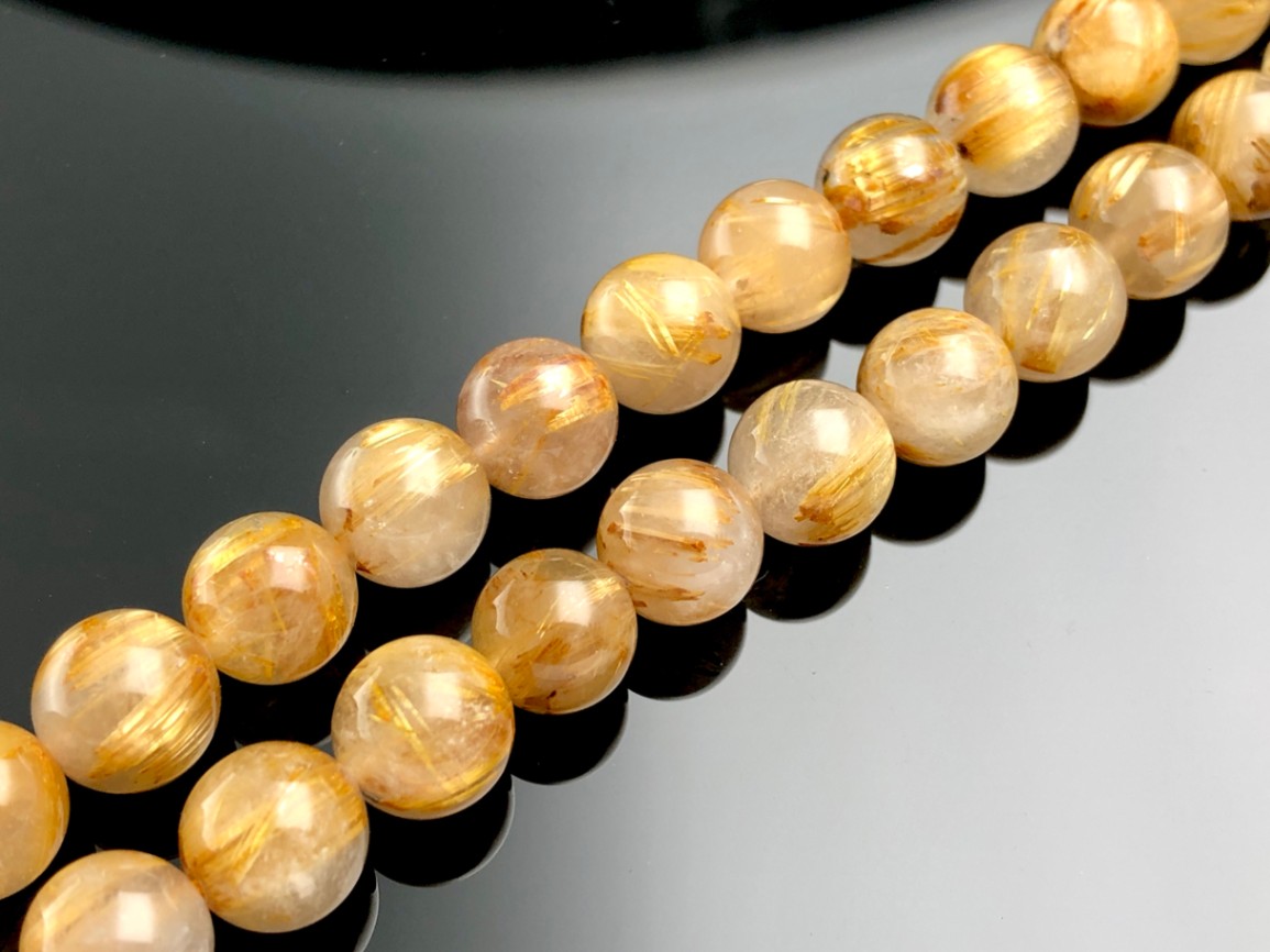 びっしり金針★金運を司る人気石★天然石ビーズ/タイチンゴールドルチル(Rutilelated quartz/針入り水晶)/ラウンド...