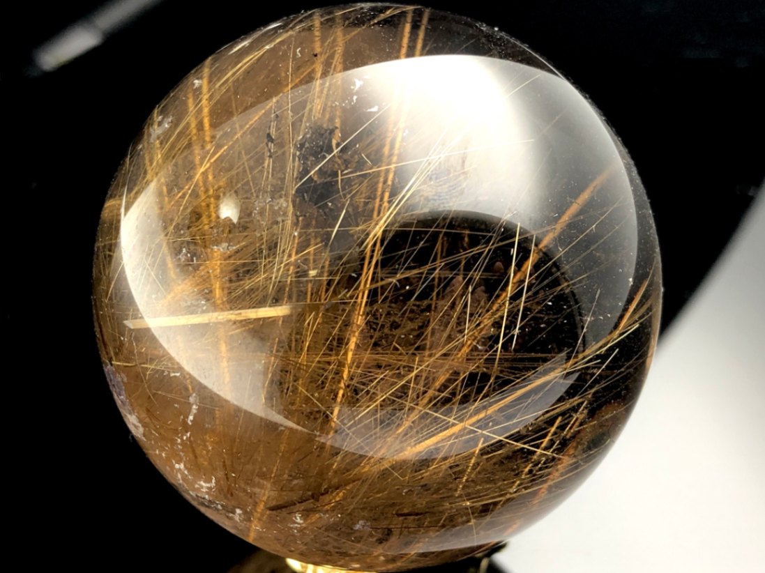 【1点物】濃密針!★金運・財運の石★ブラジル産/天然石/スモーキーゴールドルチルクォーツ丸玉(ルチレイテッドクォーツ/針入り水晶)...