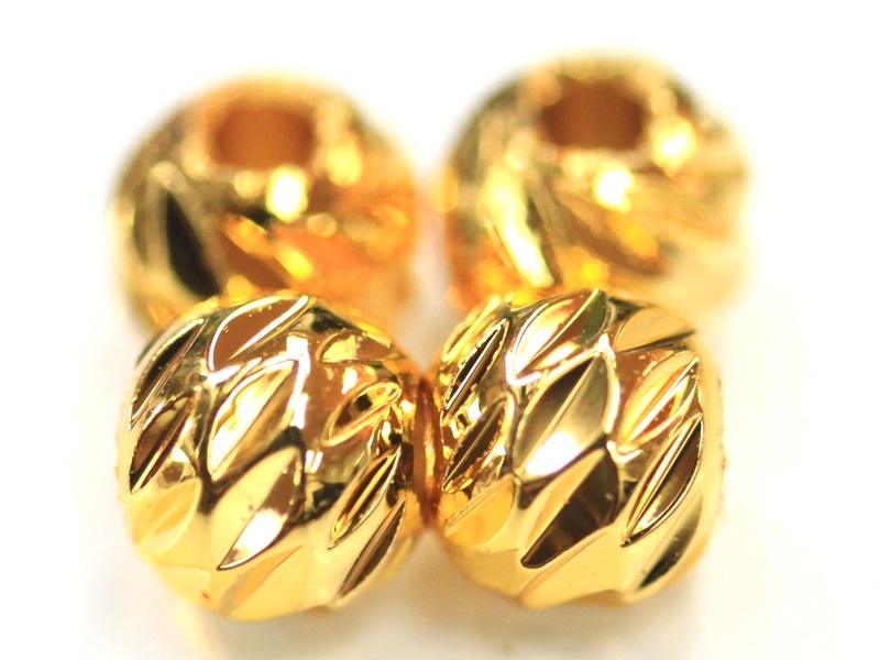 【激安】パーツ・副資材/メタルパーツビーズ/筋入りビーズ/ゴールド/ラウンド/5×6mm/10個【天然石/パワーストーン】【アメリ...