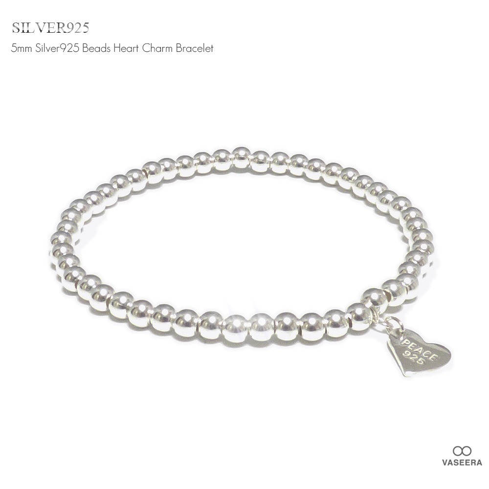 5mm幅 シルバー925 ビーズ ハートチャーム付き シルバーブレスレット 【SILVER925 】メンズ/レディース