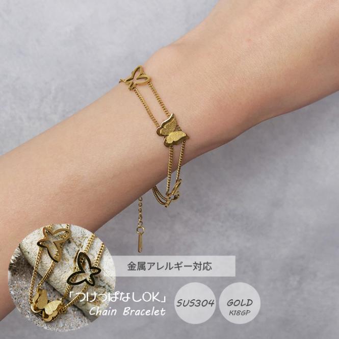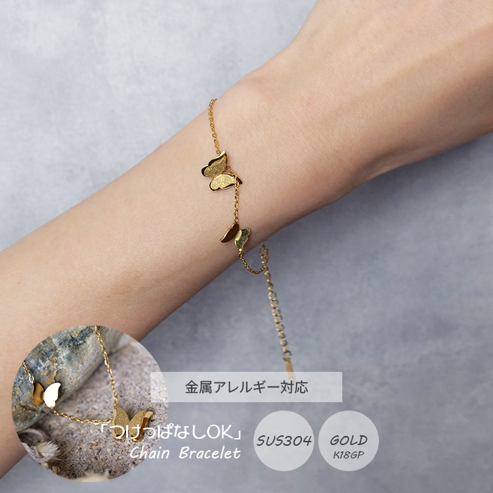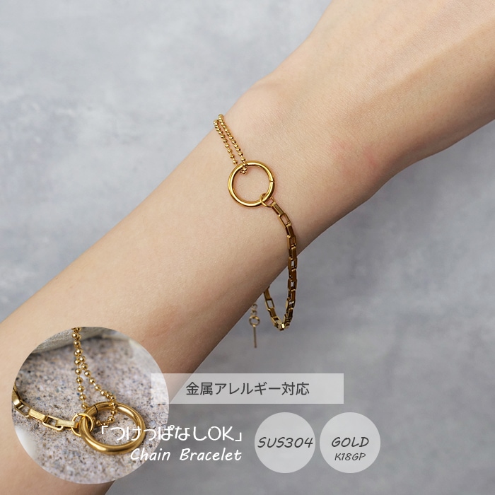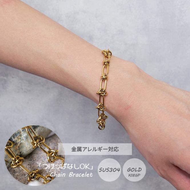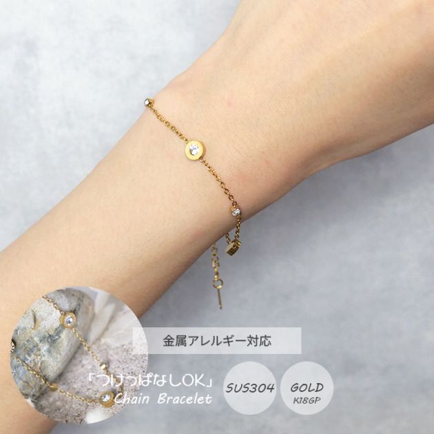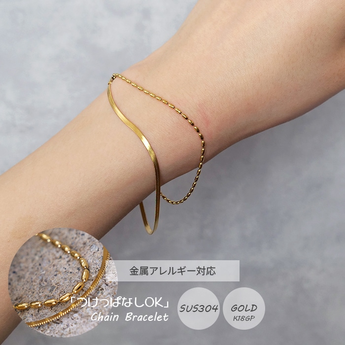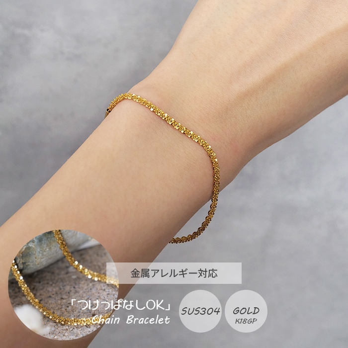 ブレスレット ステンレス レディース つけっぱなし ユニセックス 金属アレルギー ゴールド プレゼント サイズ調整可