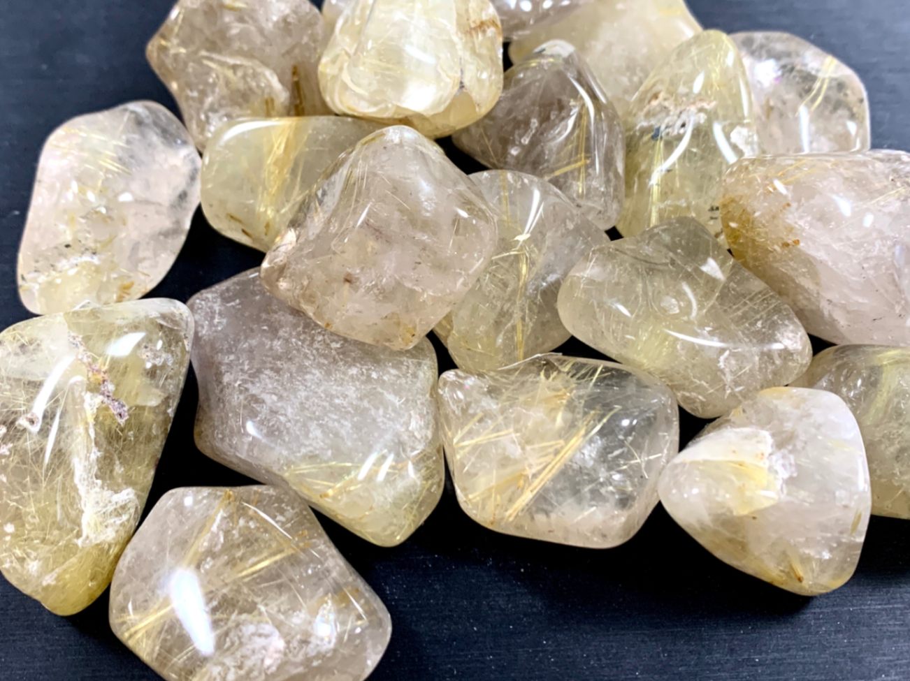金運・財運の石★ブラジル産★天然石/タンブル(お守り石・握り石・磨き石)/ゴールドルチルクォーツ(ルチレイテッドクォーツ/金紅石入...