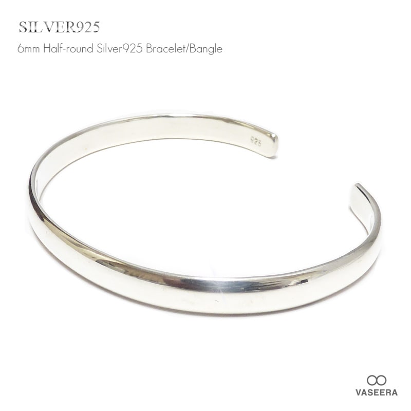 6mm幅 シンプル鏡面甲丸仕上げ シルバーバングル 【シルバー925/SILVER925 /ブレスレット】