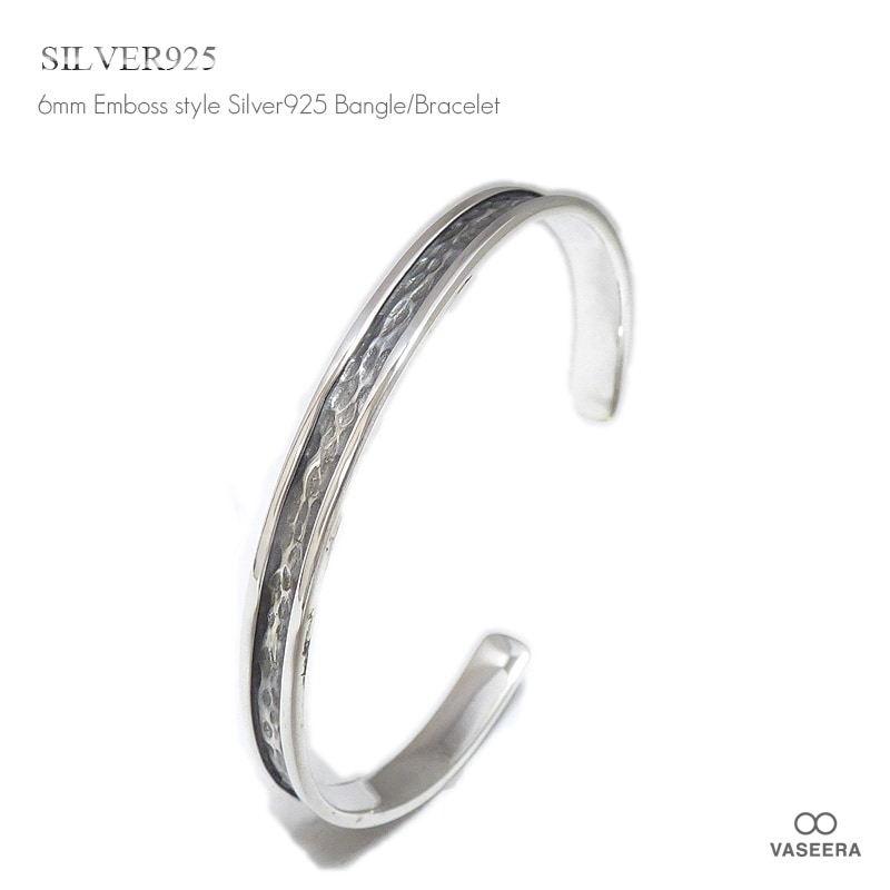 6mm幅 センター彫り込み エンボス仕上げ シルバーバングル 【シルバー925/SILVER925 /ブレスレット】