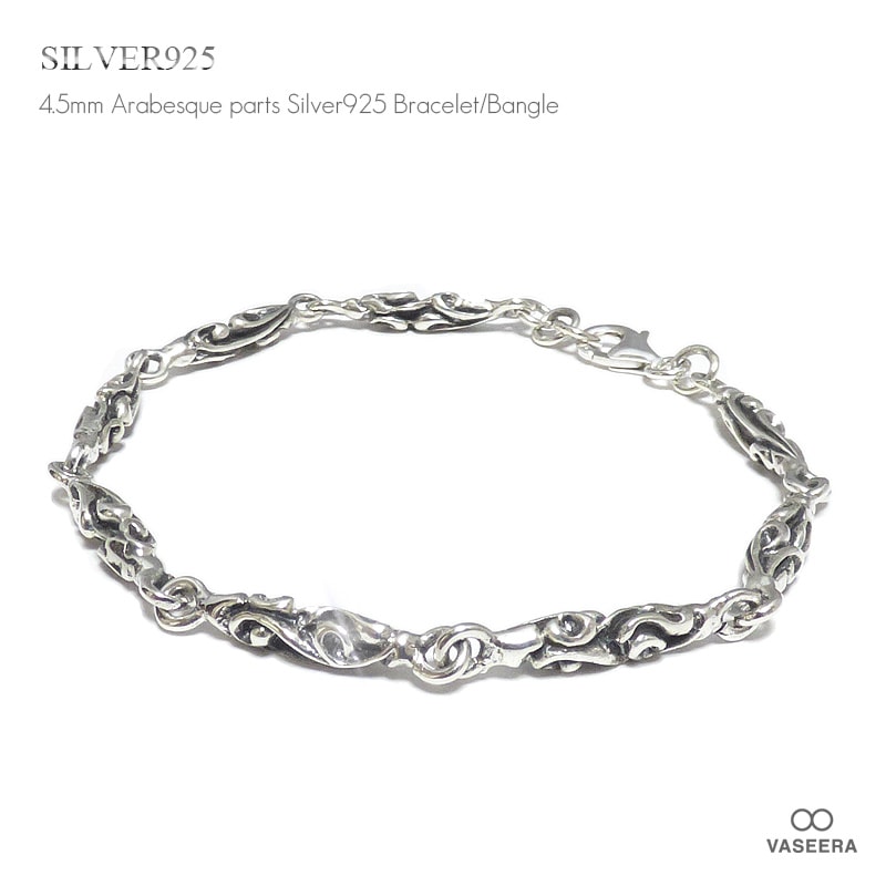 4mm幅 アラベスク(唐草)パーツ使用 シルバーブレスレット 【シルバー925/SILVER925 】