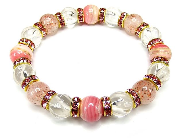 インカローズストロベリークォーツ水晶ツイスト豪華ロンデル天然石ブレスレット石街