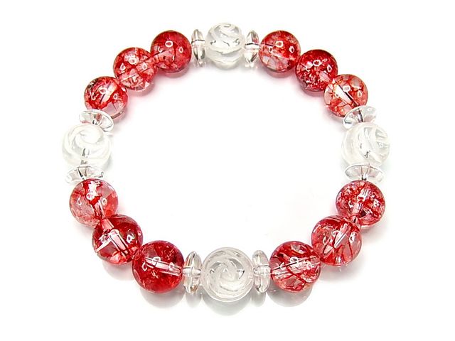 天然石レッドクラック水晶薔薇彫り水晶10mm数珠ブレスレット