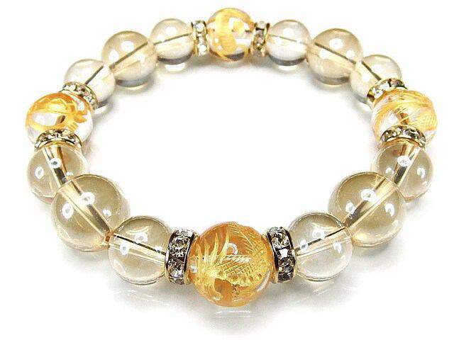 四神手彫り金箔天然石水晶12mmシャンパンアクアオーラ数珠ブレスレット
