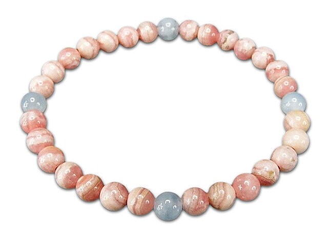 バラ人生インカローズ約5mm天使の石アクアマリン約5mm強高級天然石ブレスレット