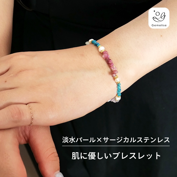 Gemelise ジェメリース 淡水パール×天然石(ブルーアパタイト・レッドトルマリンなど) ブレスレット 750309