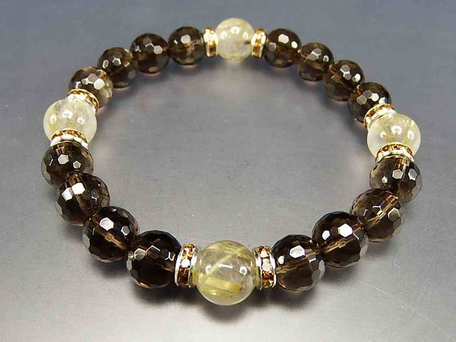 【金運】天然石3Aゴールドルチルクオーツ&茶水晶デザインブレス