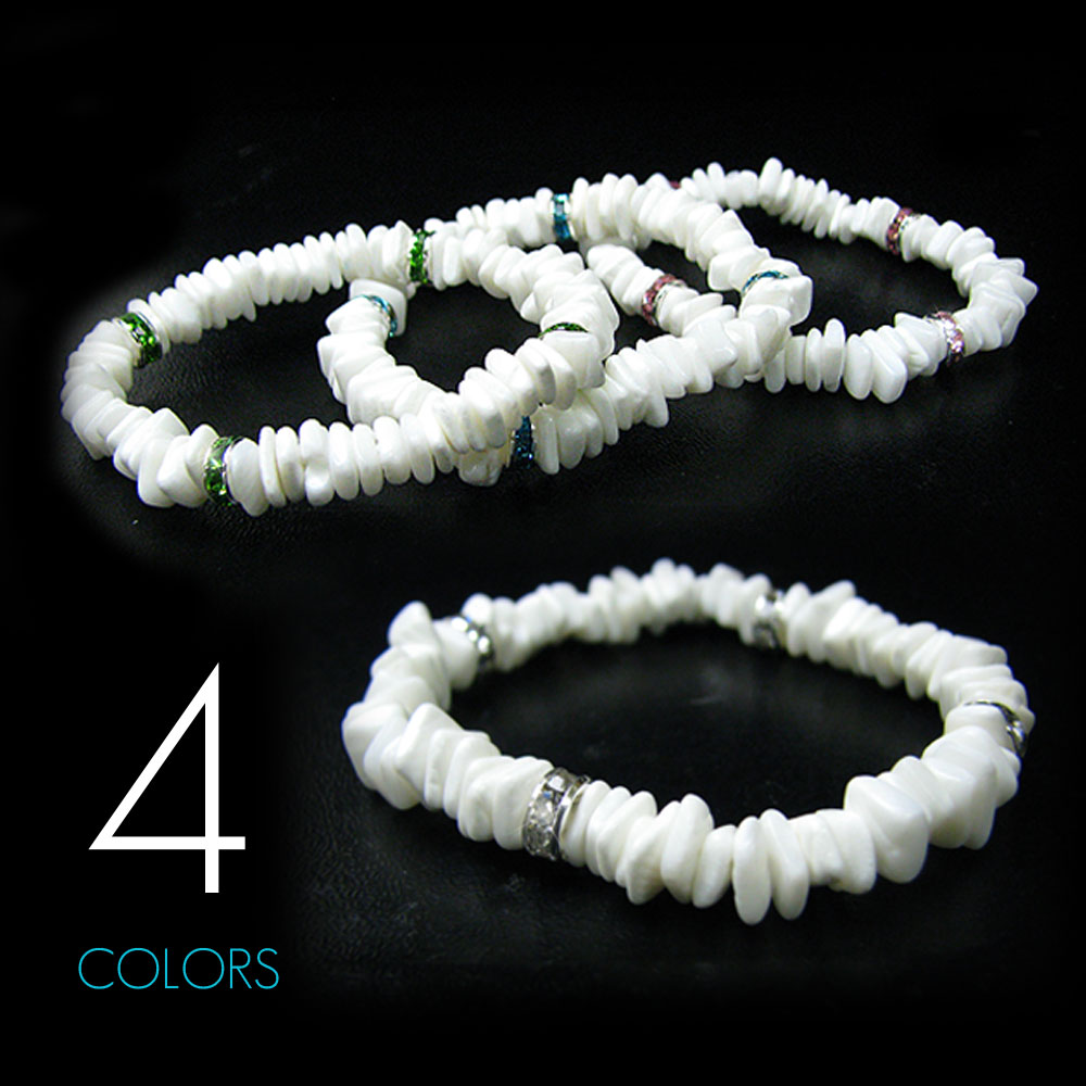 ハワイアンホワイトシェル(プカシェル) スワロフスキーロンデル(全4色) ブレスレット 【ハワイアンジュエリー】