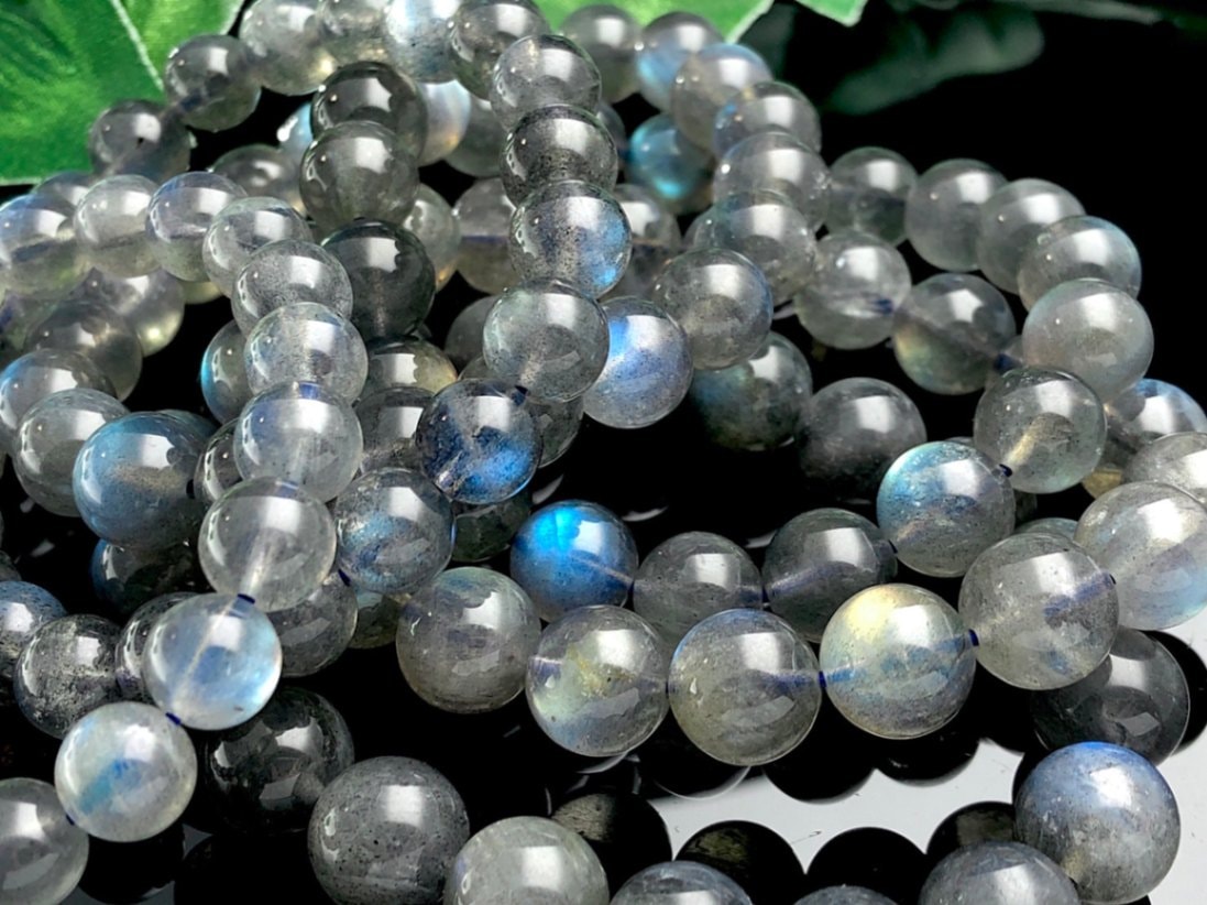 レア!★美しいレインボーシラーと艶★天然石ブレスレット/レインボーラブラドライト(Labradorite/曹灰長石)/ラウンド/約...