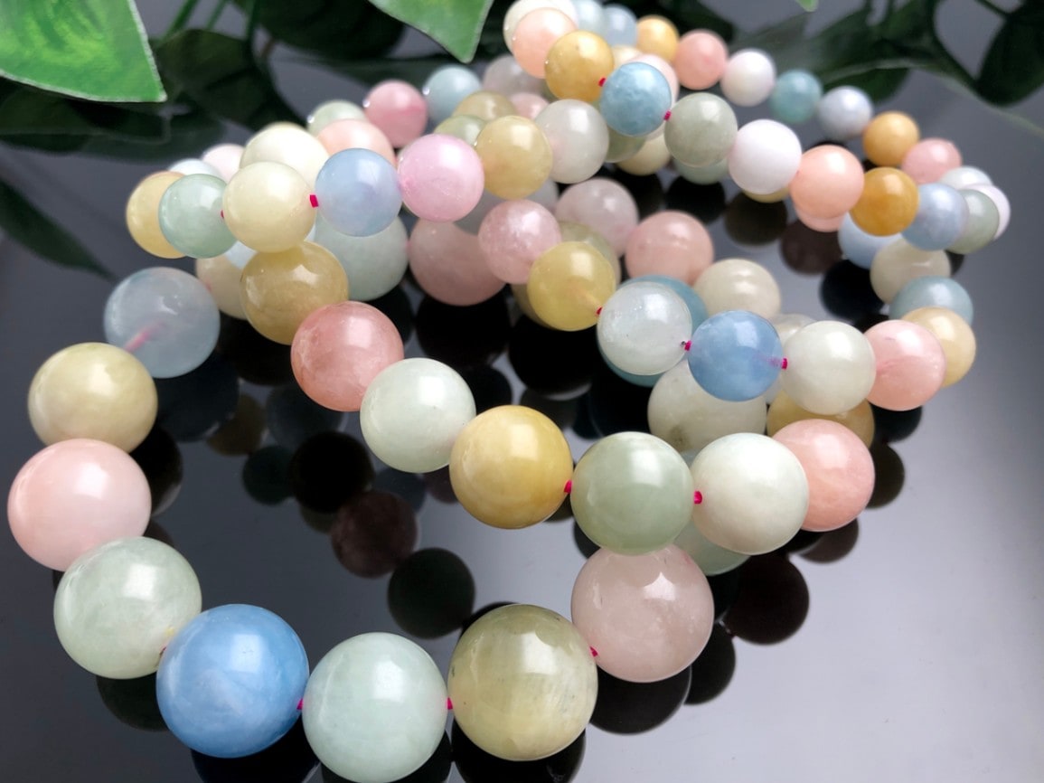 幸運を呼び込み、心を癒す★パステルカラー★天然石ブレス/3A/ミックスベリル(mix beryl/緑柱石)/ラウンド/約10mm/...