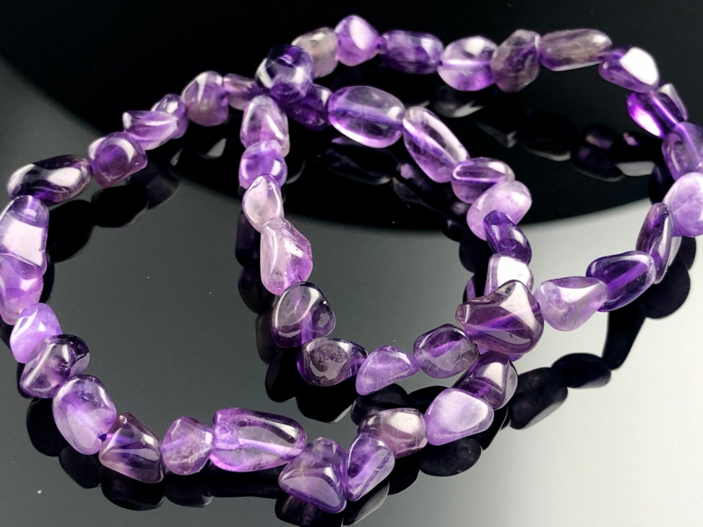美発色★定番石★ブラジル産★天然石ブレスレット/アメジスト(Amethyst/紫水晶)/タンブルカット/約8×6mm/1本【天然石...